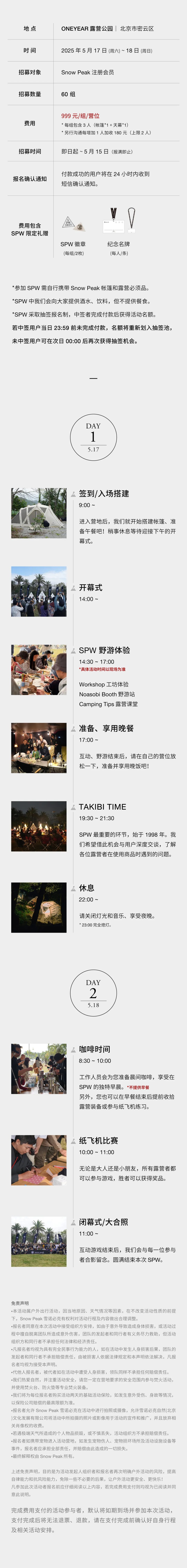 Snow Peak Way 活動前準備 ④ 北京站場次重點簡報 × 行前須知懶人包