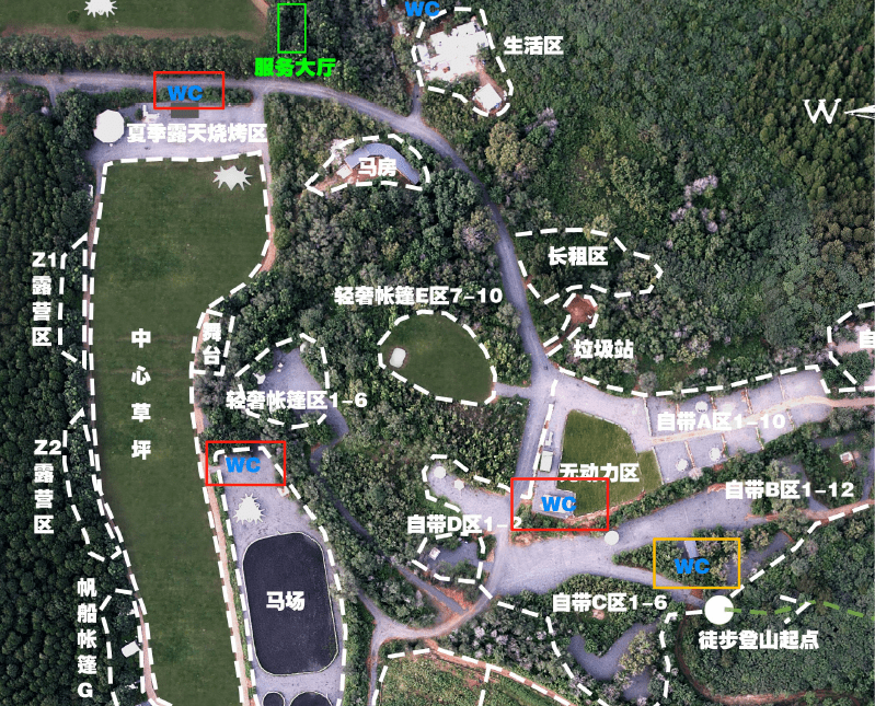 - Z1 / Z2露營區:森林包圍,適合安靜型帳篷佈置