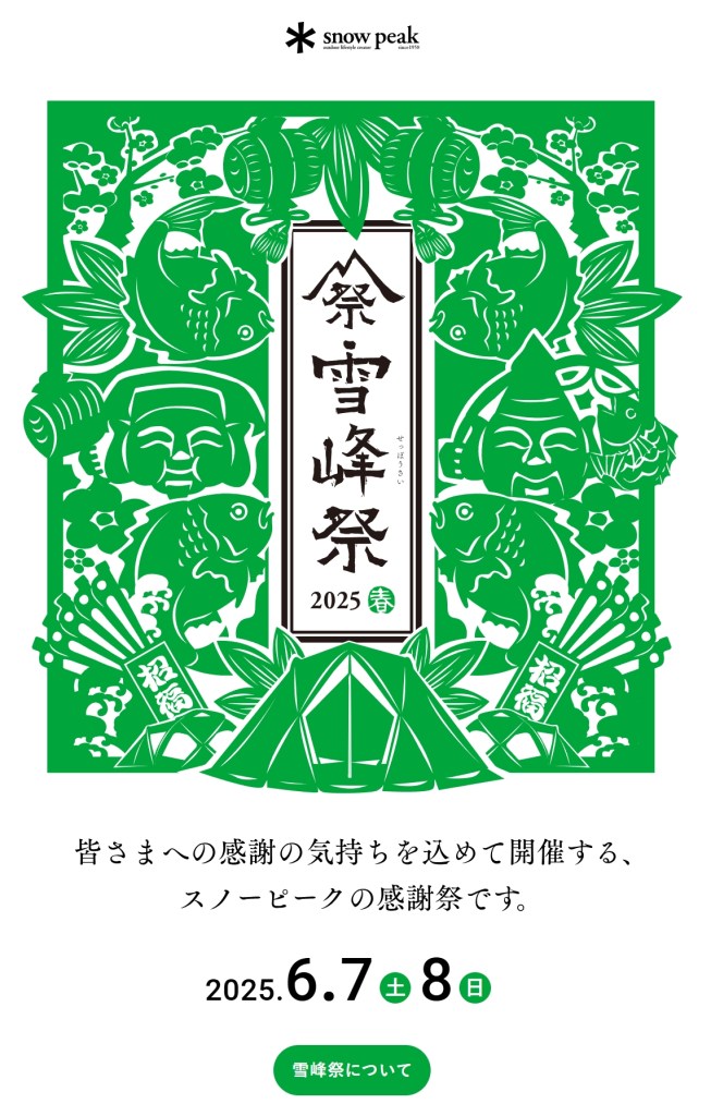 - 「雪峰祭」是 Snow Peak 品牌對「山峰」「火焰」「自然生活」的一種致敬儀式。